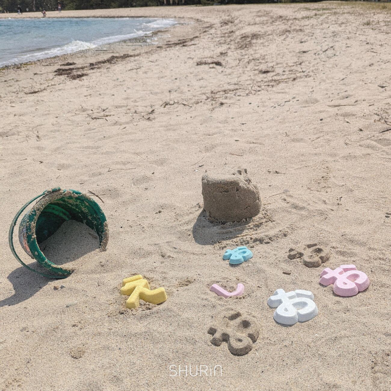 ひらがなぽんは、お砂場で遊びながら自然と“もじ”とふれあえる、型ぬきおもちゃです。